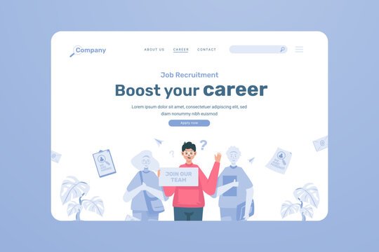 Website career page with job recruitment hiring illustration design