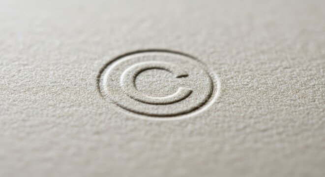Copyright Symbol Embossed on Paper Texture Macro Detailed View