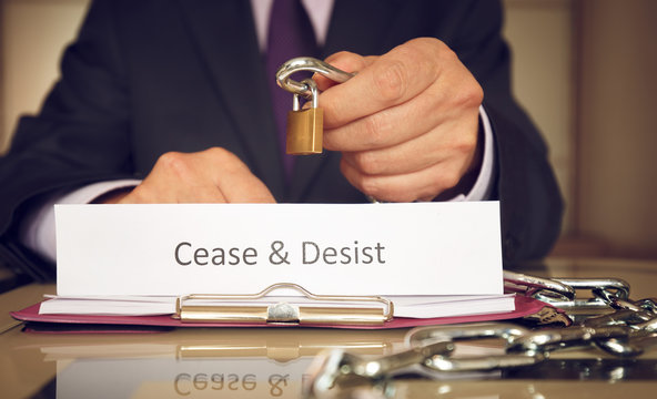 A computer screen displaying a cease and desist letter reminding individuals of the consequences of using copyrighted material without