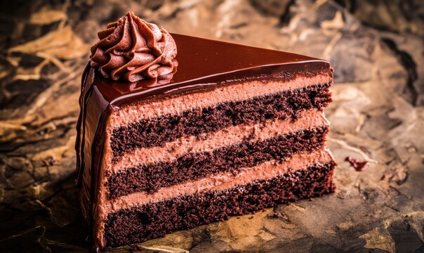 Chocolate cake on a blue plate, indulgent treat for a food blog