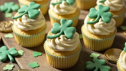 St patrick's day cupcakes with green frosting and shamrock decorations for irish holiday celebrations