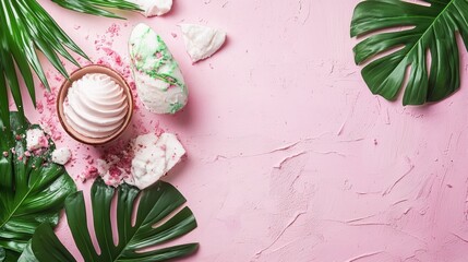 Macaron tropical background lifestyle decorative inspiration modern artistic photography composition stylish arrangement design concept dessert