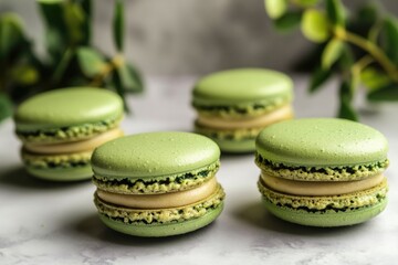 A selection of colorful macarons arranged on a surface, perfect for food photography or dessert inspiration
