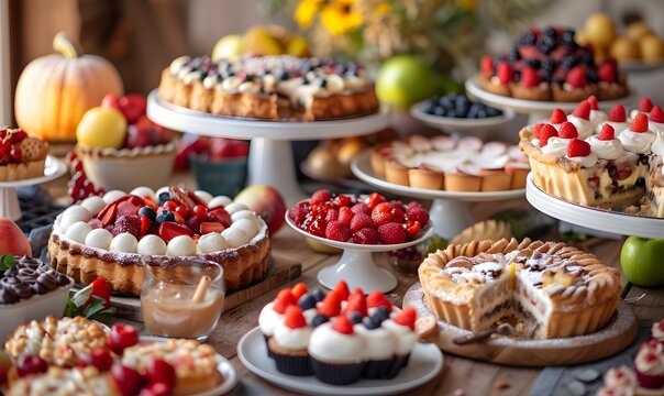 A table full of desserts and fruit, A table full of desserts and fruit, Generative AI
