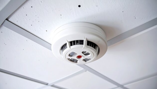 Realistic white smoke detector with red indicator vector illustration alarm fire sensor security