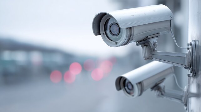 Outdoor surveillance cameras monitor the area, providing security and deterring crime. These cameras ensure a safe environment by capturing footage and keeping watch around the clock.