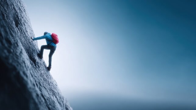 Dynamic outdoor mountain climber conquering rugged terrain with determination and adventure in scenic natural landscape emphasizing sport, hiking, and outdoor recreation