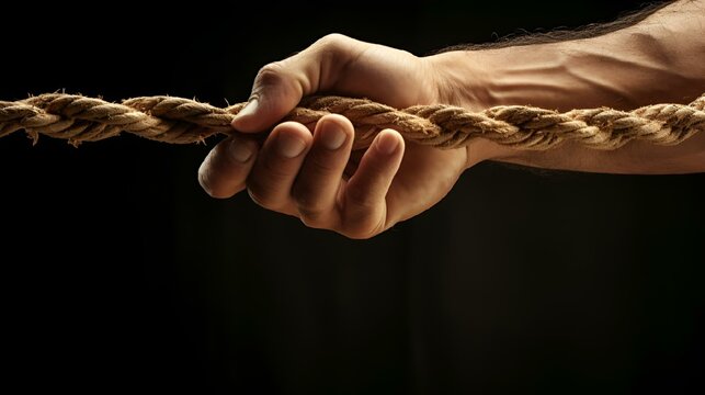 People Never giving up, strength and power. Man feeling determined climbing up a steep mountainside.
