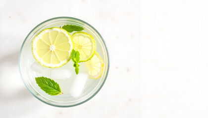 Refreshing detox water with lemon and mint in soft light, health rejuvenation