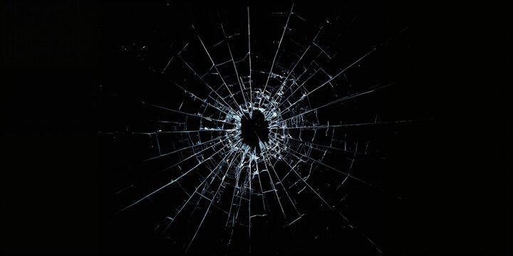Shattered glass with visible fractures from collision, used for structural integrity analysis