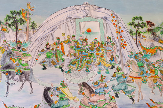 Statue Of Guan Yu deva [God of honor] paint fine art on door.