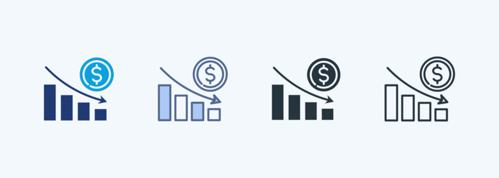 Financial Decrease icon set multiple style collection
