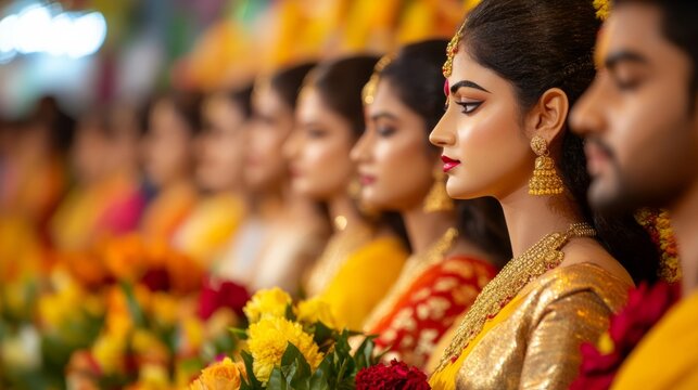 Kanathur Nalvar Guruparan Swamigal Vizha, devotees line up in traditional Tamil attire, carrying offerings and flowers to the temple in Kanathur, Ai generated images