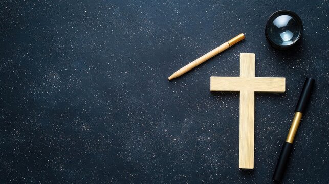 Small, rolled, light-brown scroll with an orange cross. Dark background