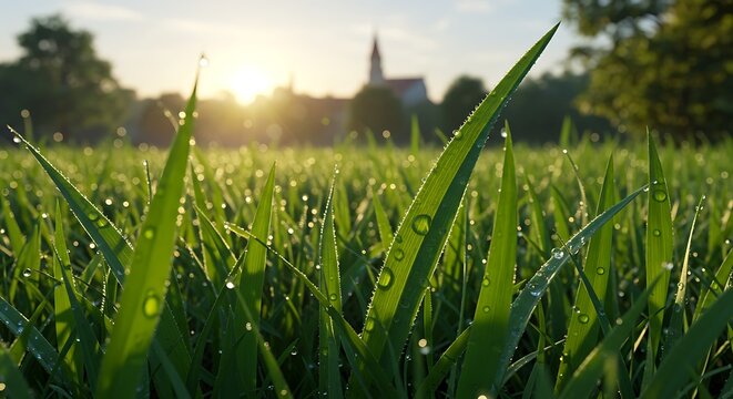 Sunrise over a golf course, calm morning, residential neighborhood. Possible use Stock photo for real estate, nature, or golf advertisements