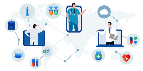 Telemedicine e-health telehealth online doctor consultation using digital online internet device like smartphone to diagnose health care