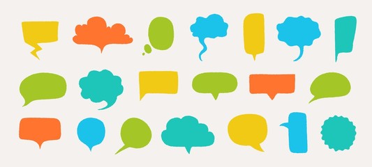 Hand drawn speech bubbles. Doodle text shapes elements with rough edges and noisy grunge texture. Vector illustration isolated set abstract gossip comment tag