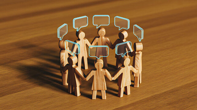 Two pastel-colored speech bubbles with dots on a soft background, representing dialogue and communication