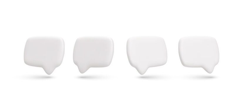 Speech Bubble 3D Icons In Minimal White Style. Blank Chat UI Elements For Messenger, App Interface, Social Media, And Design Projects. Soft Rounded Shapes. Vector Illustration.