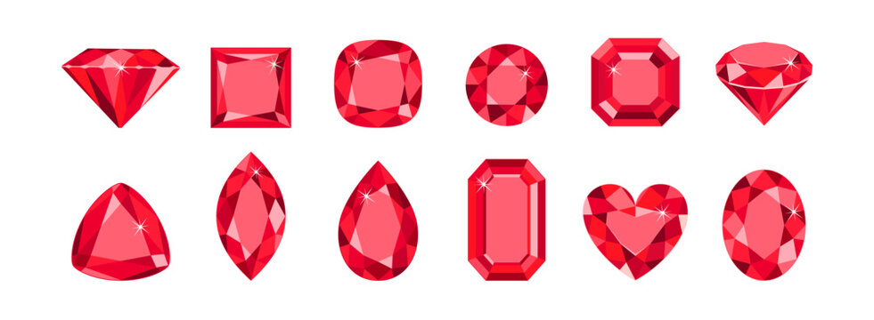 Vector basic shape collection for your design. Red linear polygonal elements with sharp and rounded edges