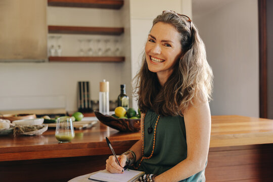 Woman Making To Do List While Enjoying Morning Coffee At Home