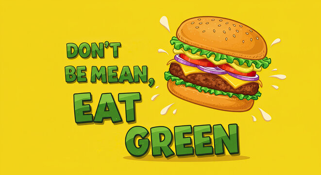 Eco friendly burger concept with vibrant yellow background for healthy eating campaign
