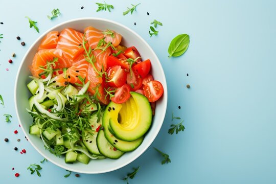 Colorful fresh seafood salad promoting healthy eating