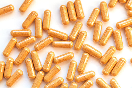 Ashwagandha tablets, dietary supplement of herbal origin, natural background
