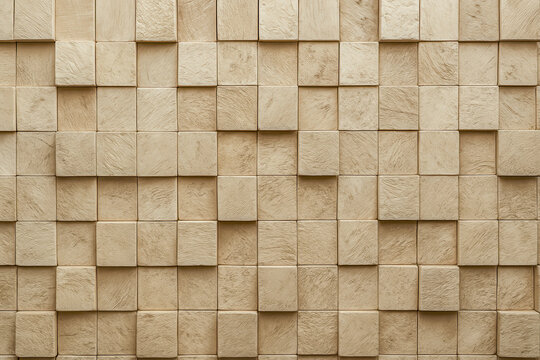 Wooden square tiles panel modern interior wall design beige maple blocks pattern construction acoustic sound diffuse backdrop concept decor style