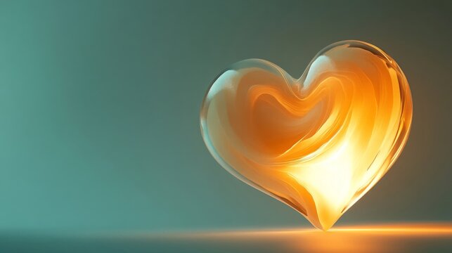 Glowing Glass Heart on Teal Background