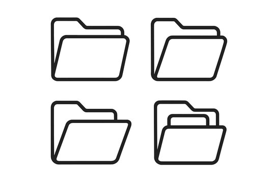 Folder icon set for data storage and file organization. Vector line art illustration for business documents, office archives, and digital directory management. Minimalist design.