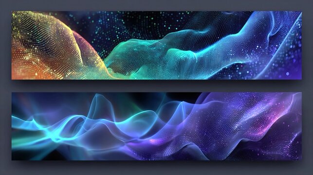 NFT banner templates with futuristic graphics and digital art display layouts, ideal for online galleries, portfolios, and crypto sites