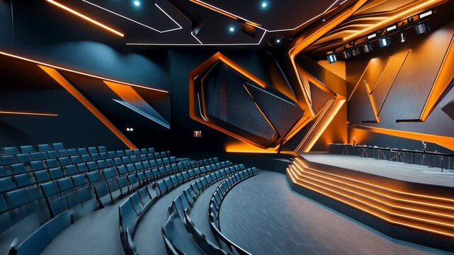 Futuristic Auditorium Design with Striking Geometric Light Fixtures