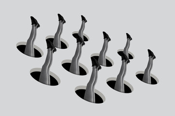 Digital collage modern art, Two Hand reaching through retro picture frame