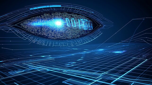 Close-up of a woman's face with digital code overlaying her features, merging human with virtual, in a dreamscape narrative.