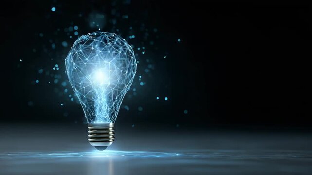 Futuristic light bulb glowing with digital energy, representing innovation and ideas in a modern context.
