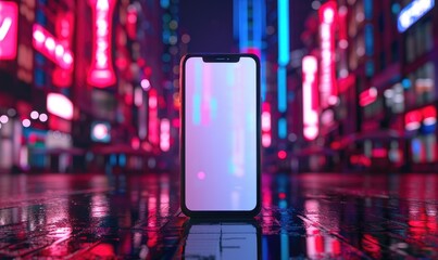 A Male hand holding smartphone with blank screen on vibrant neon color background AI generate