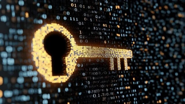 Glowing key symbol within a quantum network representing the concept of quantum secure communication and the advancement of digital data security technologies