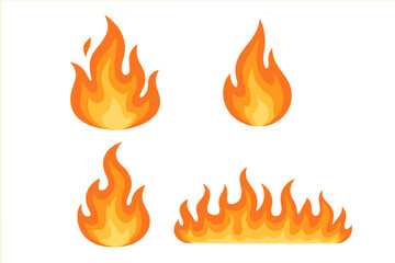 Fire flame icons set flat design vector. Orange yellow burning flames collection. Cartoon fire symbols pack. Heat blaze torch elements. Ignition combustion graphic resource