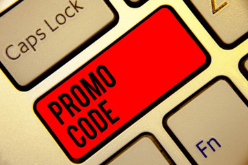 Conceptual hand writing showing Promo Code. Business photo text digital numbers that give you good discount on certain product Keyboard red key create computer computing reflection document