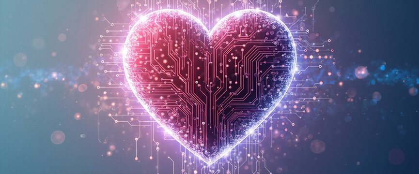 Bright red neon heart symbol glowing against dark background, representing love and passion with modern digital touch