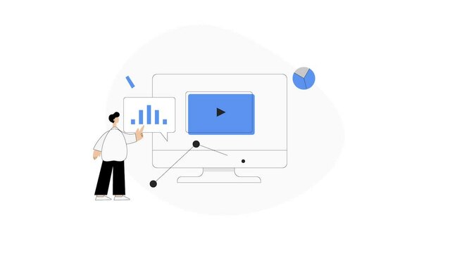 A futuristic cylinder with data and graphs floating around it, creating an immersive experience for the user, representing advanced technology in business analytics or digital marketing tools.
