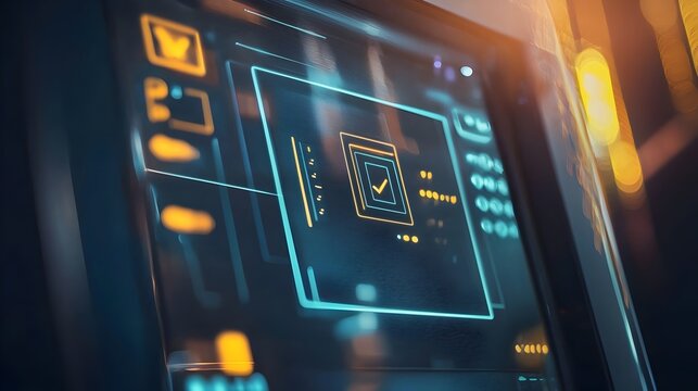 Close-up View of Voting Machine Interface with Digital Security Icons