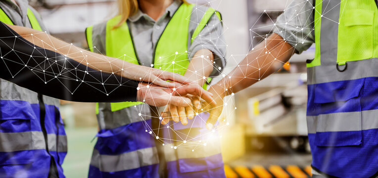 Group of civil engineering workers collaborates colleague with fist and field coordination in organization and teamwork : Building network of people in a successful teamwork concept.