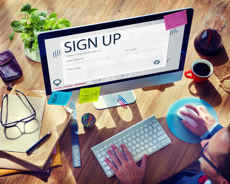 Concept of online registration, sign up, user interface. Registration sign up. People register new account. Users use secure login password. Vector illustration in flat cartoon design UI mobile app