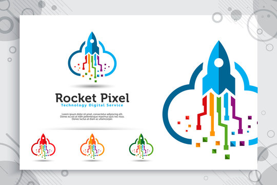 rocket pixel cloud vector logo with simple and colorful concept, illustration rocket cloud, and pixel as a symbol icon of software technology digital template