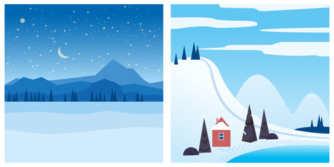Winter wonderland holiday greeting card design with snowy scene