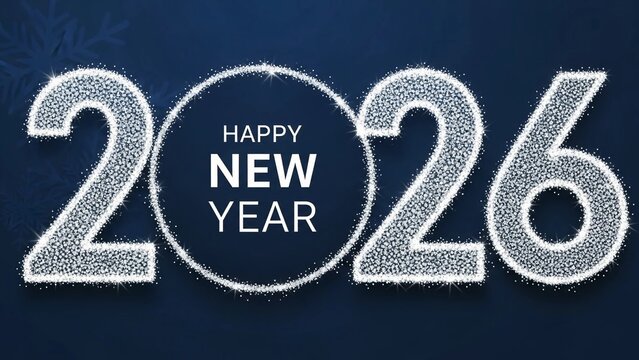Glittering 2026 New Year Celebration on Sparkling Blue Bokeh Background Festive Gold Typography Design for Holiday Greeting Cards and Invitations