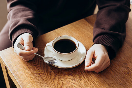 Relaxing moment with coffee on a wooden table