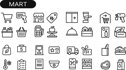 Home Goods Sale Icons. Line style icons of home goods sales: sofa with tag, lamp with discount icon, dining set and label, shelf